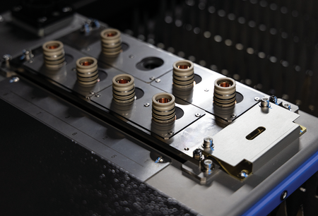 One of the most significant aspects of ORSUS-AJe is its ability to keep the process stable while reducing repetitive tasks that, in daily operations, tend to slow down production. The automatic nozzle changer with 8 stations goes beyond simple replacement: it also includes cleaning and calibration of the cutting head, helping to minimize downtime and streamline operations.