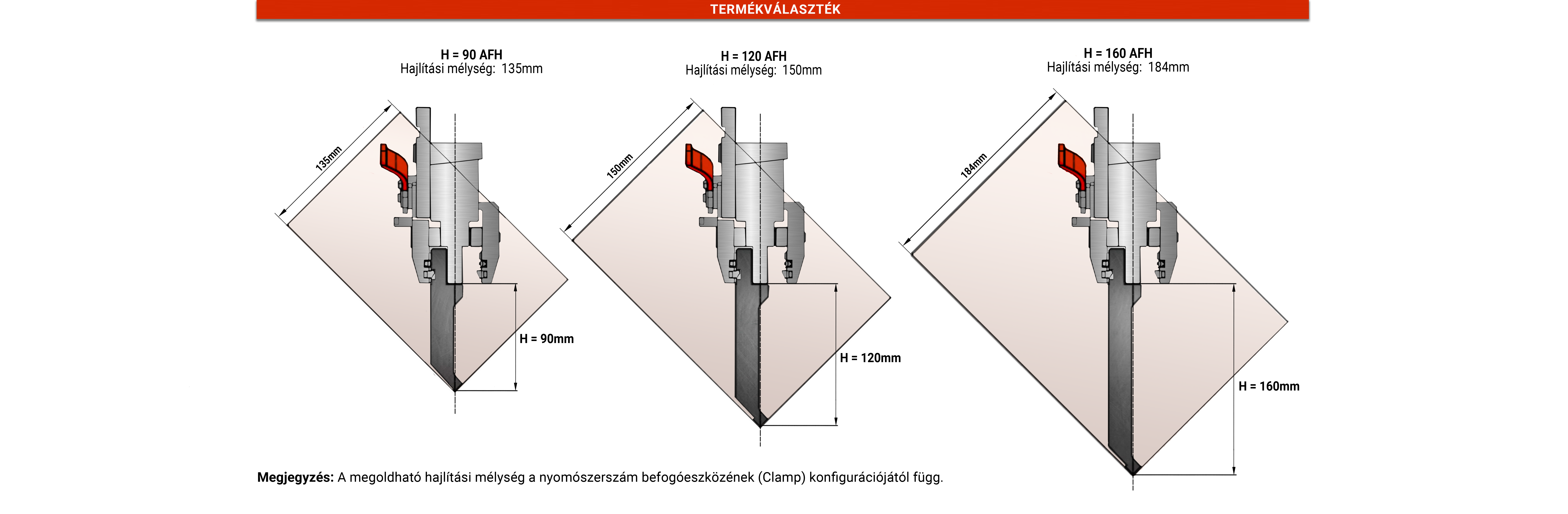 AFH - Az AFH - AMADA fix magasságú szerszámai kiváló megoldást jelentenek a beállítási idők csökkentésére. A 90 mm, 120 mm és 160 mm magasságú szerszámokkal több különböző profil használható egymás mellett, így mélyebb és összetettebb alkatrészek hajlíthatók egyetlen gépbeállítással.
